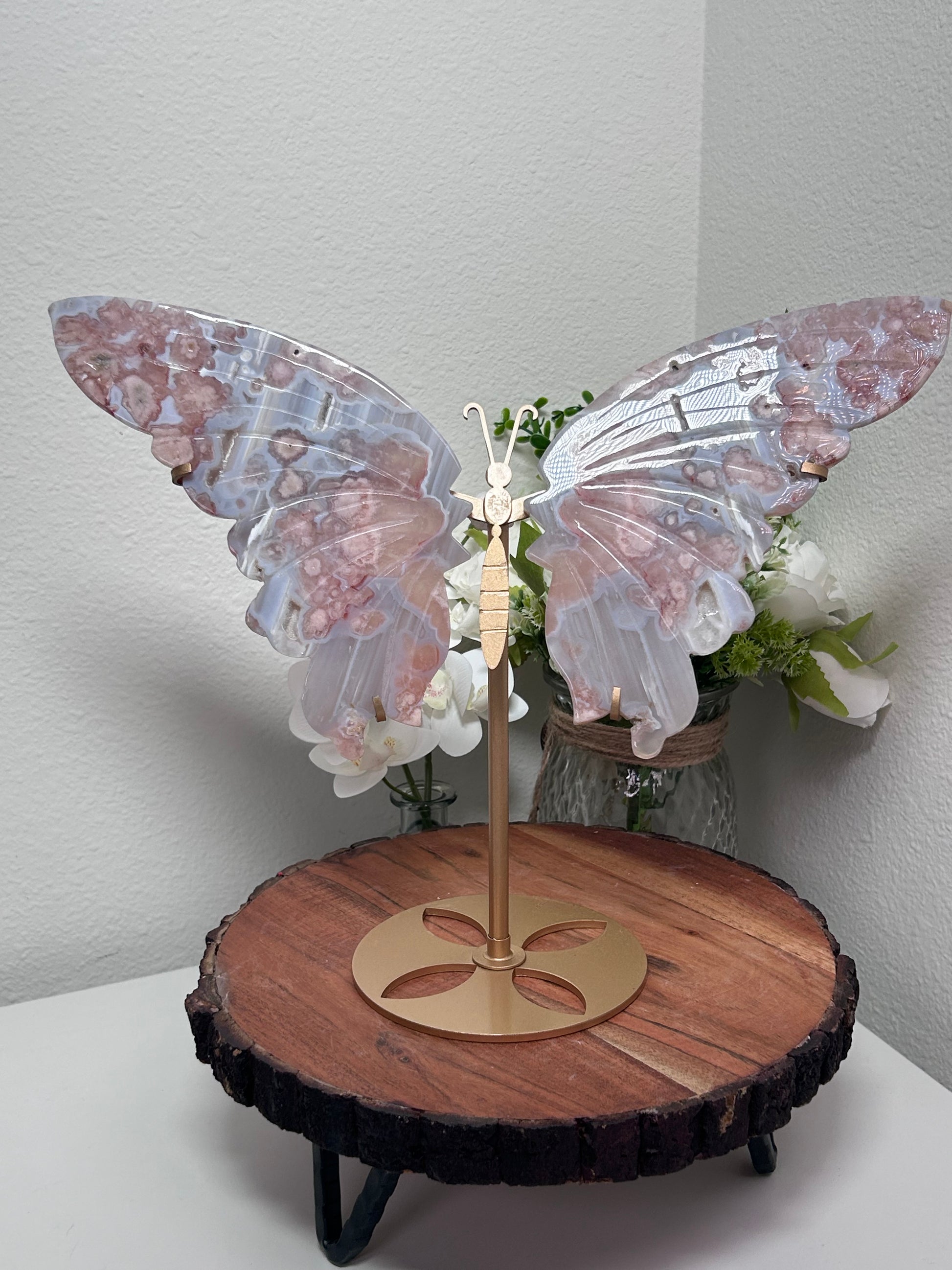 Amethyst and Black Flower Agate Butterfly Wing Set 324