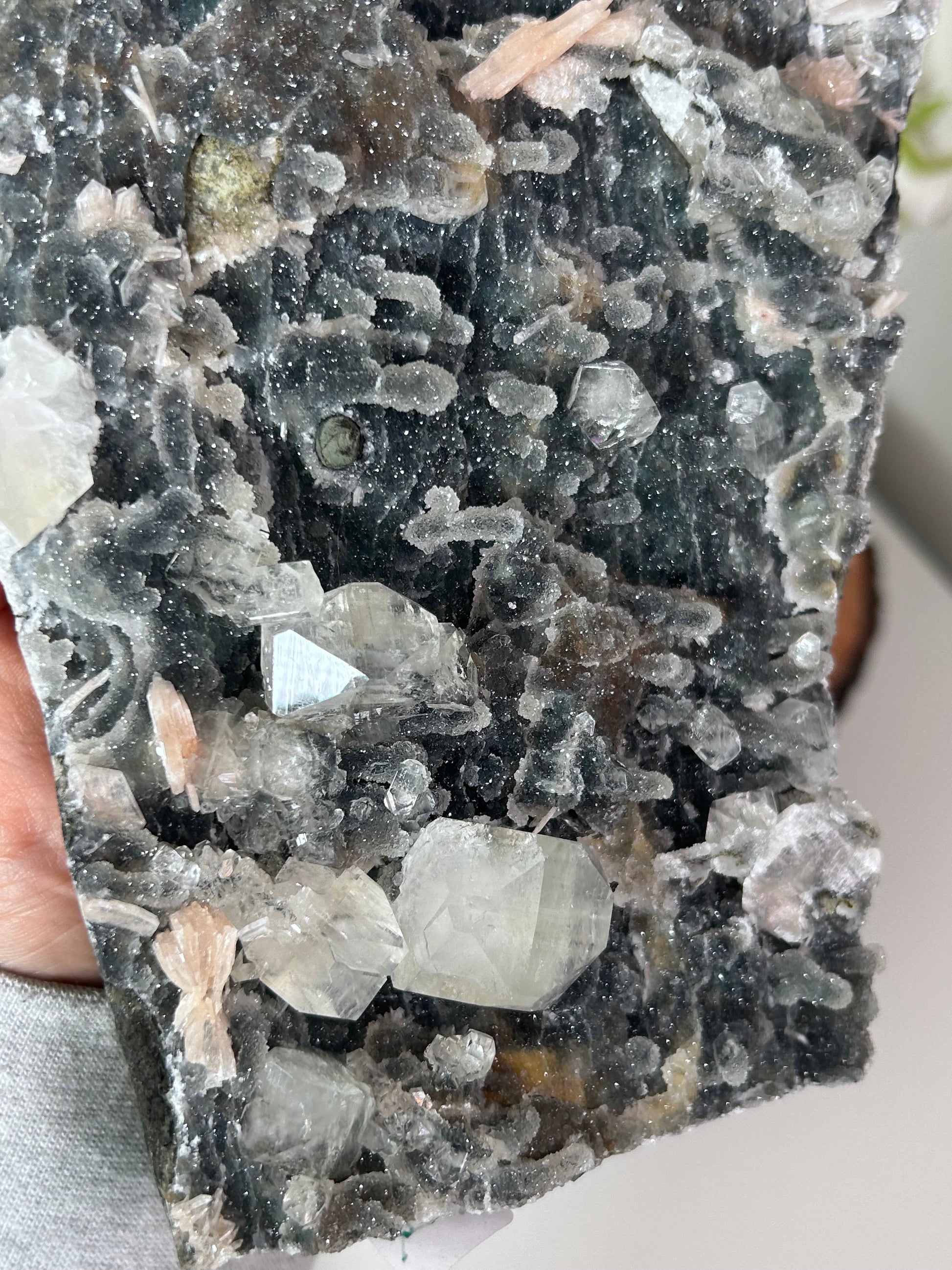 Black Chalcedony with Stilbite and Diamond Apophyllite **doesn't stand