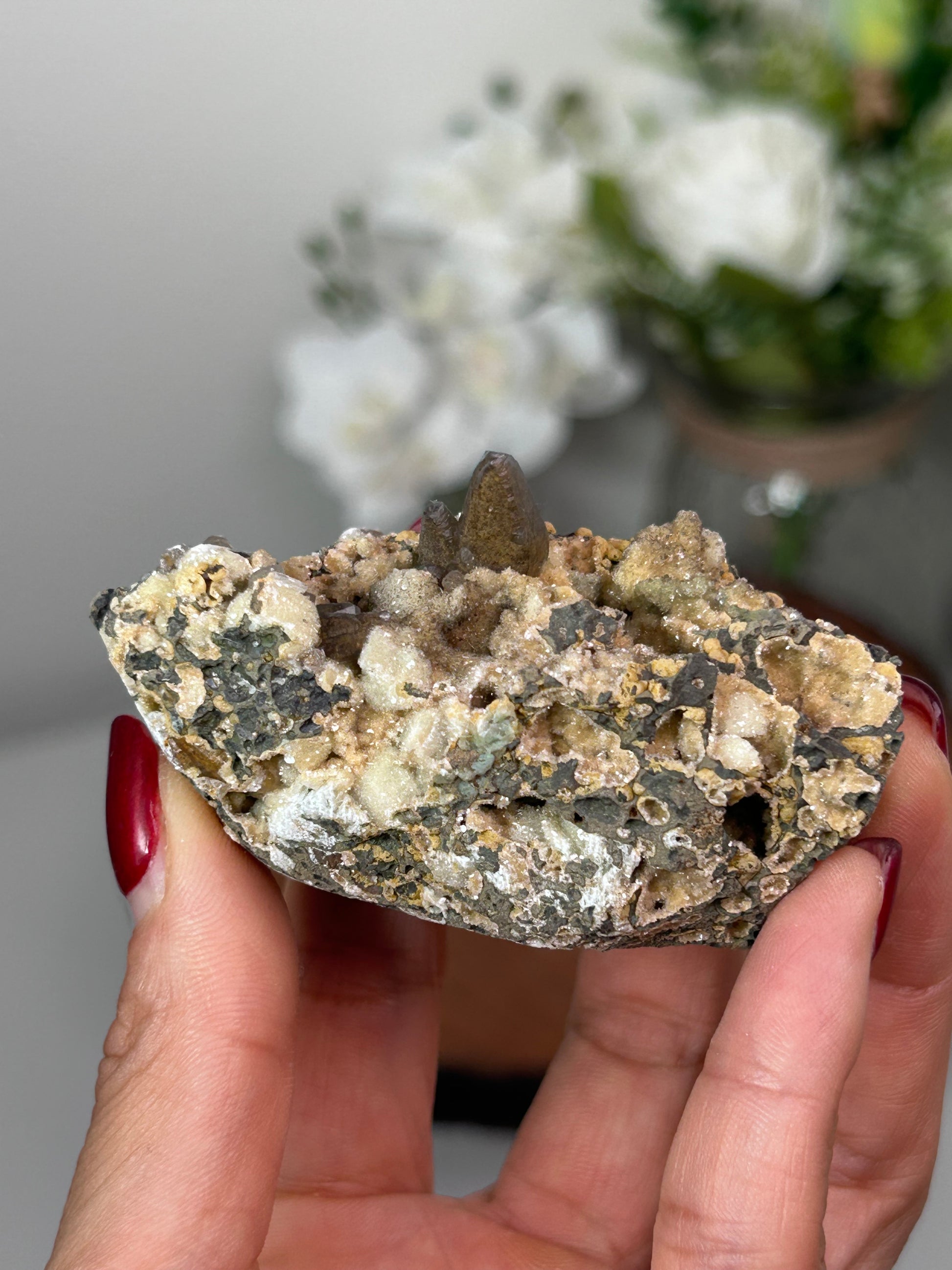 Dog Tooth Calcite with heulandite & chalcedony 26