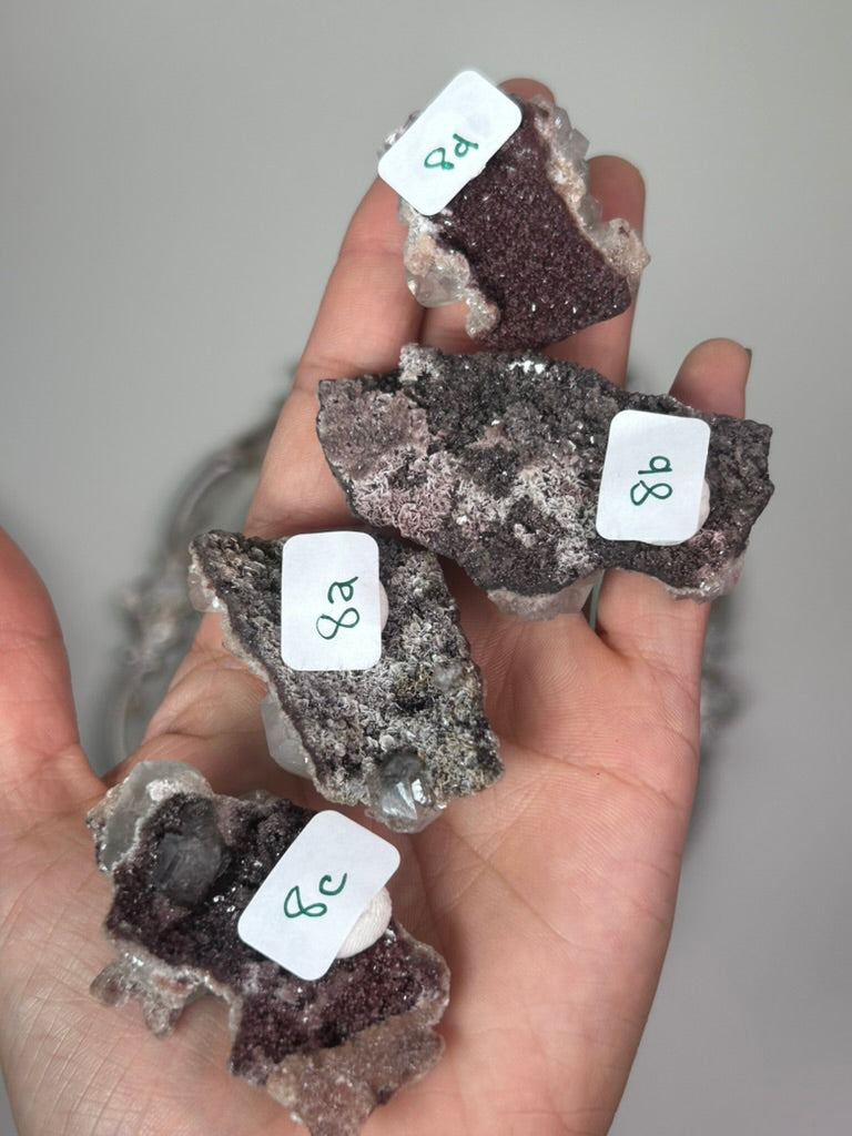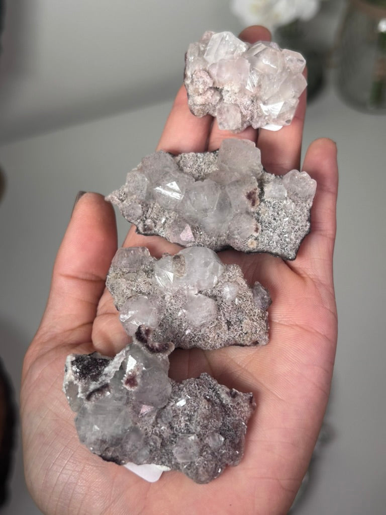 Maroon Marshy Apophyllite on Pink Chalcedony 8